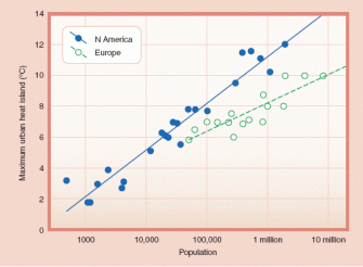 As the world’s population becomes more urban, cities become more populated, increasing the UHI effect as shown in this graphic: