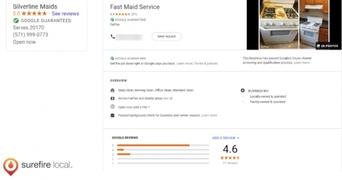 Google Local Services Ads provide a good deal of information about your business without forcing someone to click to learn more. They include your star rating based on your online reviews, contact information, service area, and other details. The format includes a smaller ad with a Google Guaranteed Badge on it. It also appears first in Google’s rankings. A viewer can click on it to open it up to a larger, more detailed explanation of the company.